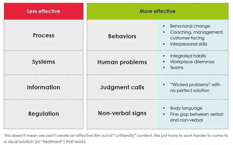 With dramas, we should aim to present identifiable dilemmas that people find difficult to resolve. That’s the shortest version of a learning video’s most important maxim.