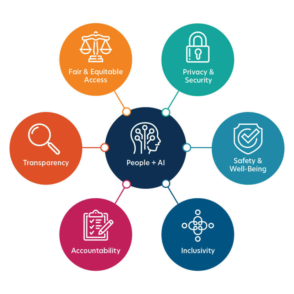 - Embrace diversity, equity, and inclusivity: AI-enabled learning products and services should reinforce our commitment to diversity, equity, and inclusion. For example, AI outputs and the underlying models should be assessed and monitored for cultural bias. How well does AI work in different regions of the world? Does it work effectively for both Japan and Brazil?