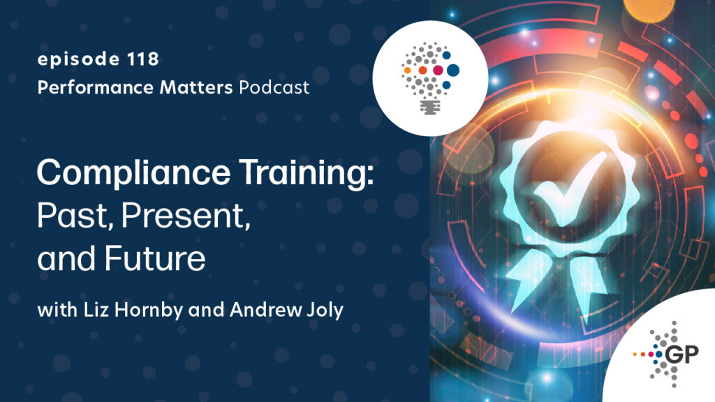 In this latest episode Andrew Joly, Global Head of Strategy for GP Learning Experience interviews Dr. Liz Hornby, GP Learning Experience’s Principal Learning Consultant and Compliance Training expert on the topic of Compliance Training’s past, present, and future. They’re both luminaries in the field of compliance training and learning experience, but with very unique areas of focus.