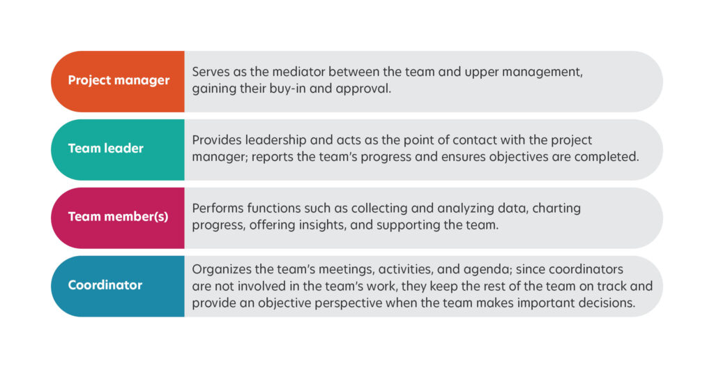 Next, you will want to identify key stakeholders that are tied to the problem area or areas. Collecting a variety of different perspectives is crucial. While HR managers would be essential stakeholders in our candidate testing scenario, you would also want to speak with facilitators who administer the tests and the employees who manage the testing schedule. It might also be beneficial to talk to someone in IT who can help assess the process from a technological perspective. Keep in mind that everyone has a different point of view. Speaking with employees in a variety of roles will help you uncover insights that may not be apparent to those in a leadership role.