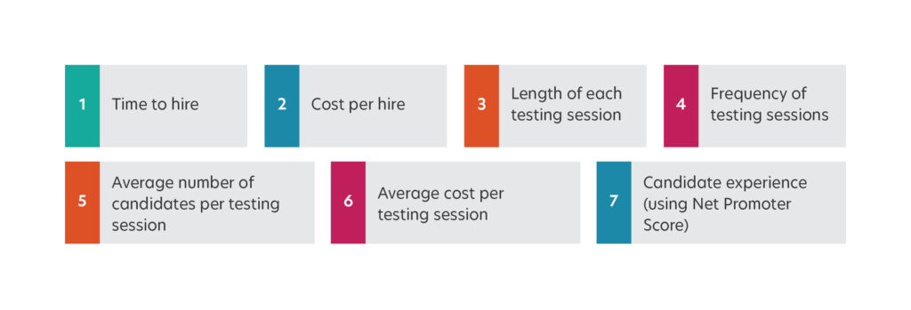 The goal in our scenario is to shorten the candidate testing process. Some effective KPIs for this scenario might be: